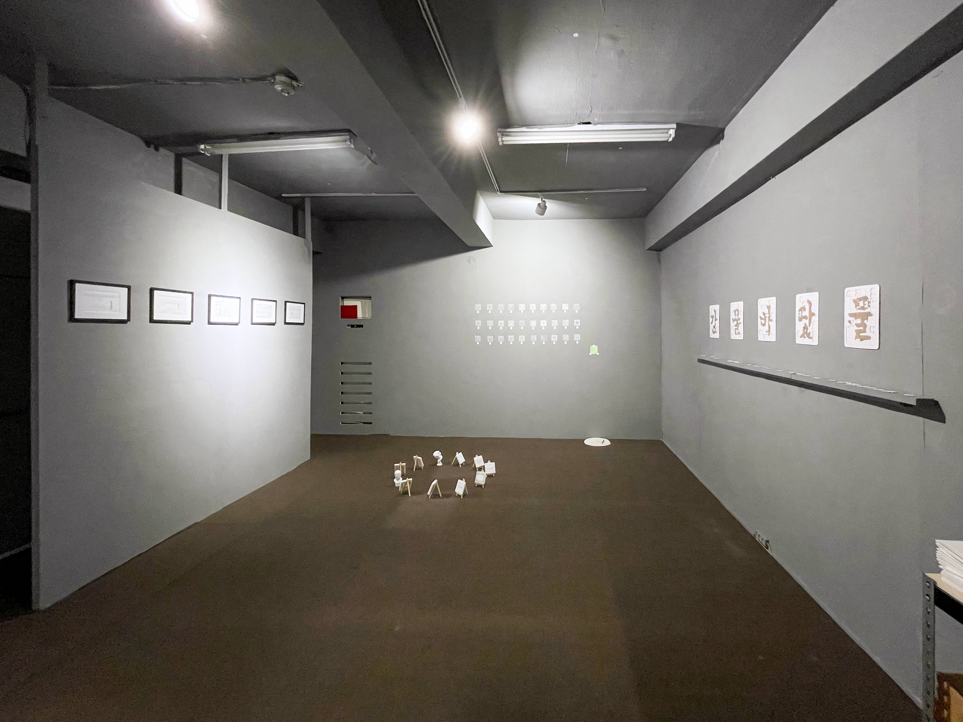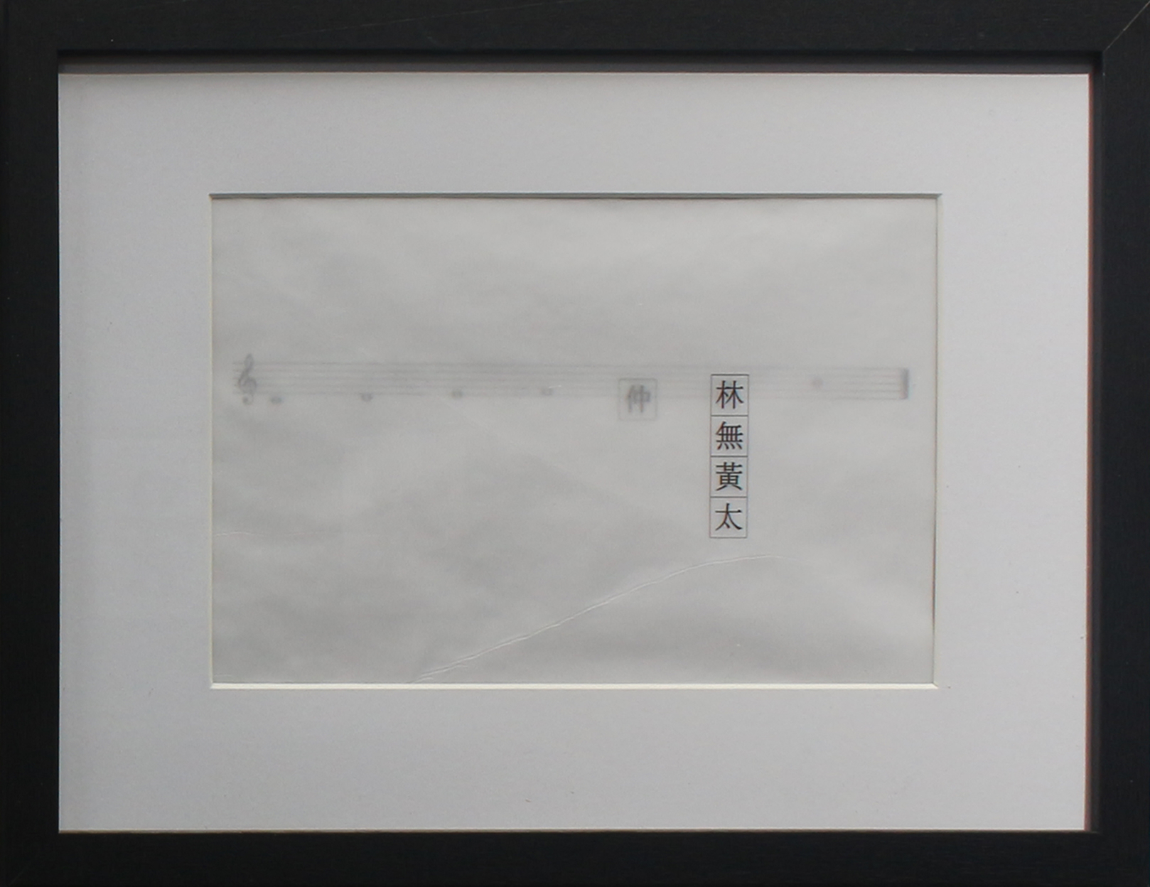 단소가 연주하는 ‘중임무황태’와 리코더가 연주하는 ‘도레미파솔라시’ 음계를 2채널의 스피커로 분리하고 이를 그린 악보가 있습니다. 단소와 리코더의 음의 높낮이가 같아지는 경우의 수에는 악보의 음표를 겹칩니다. ‘음악’이라는 청각언어와 ‘기호’라는 시각언어를 함께 보여줄 수 있을까,라는 질문에서 시도한 작업입니다.