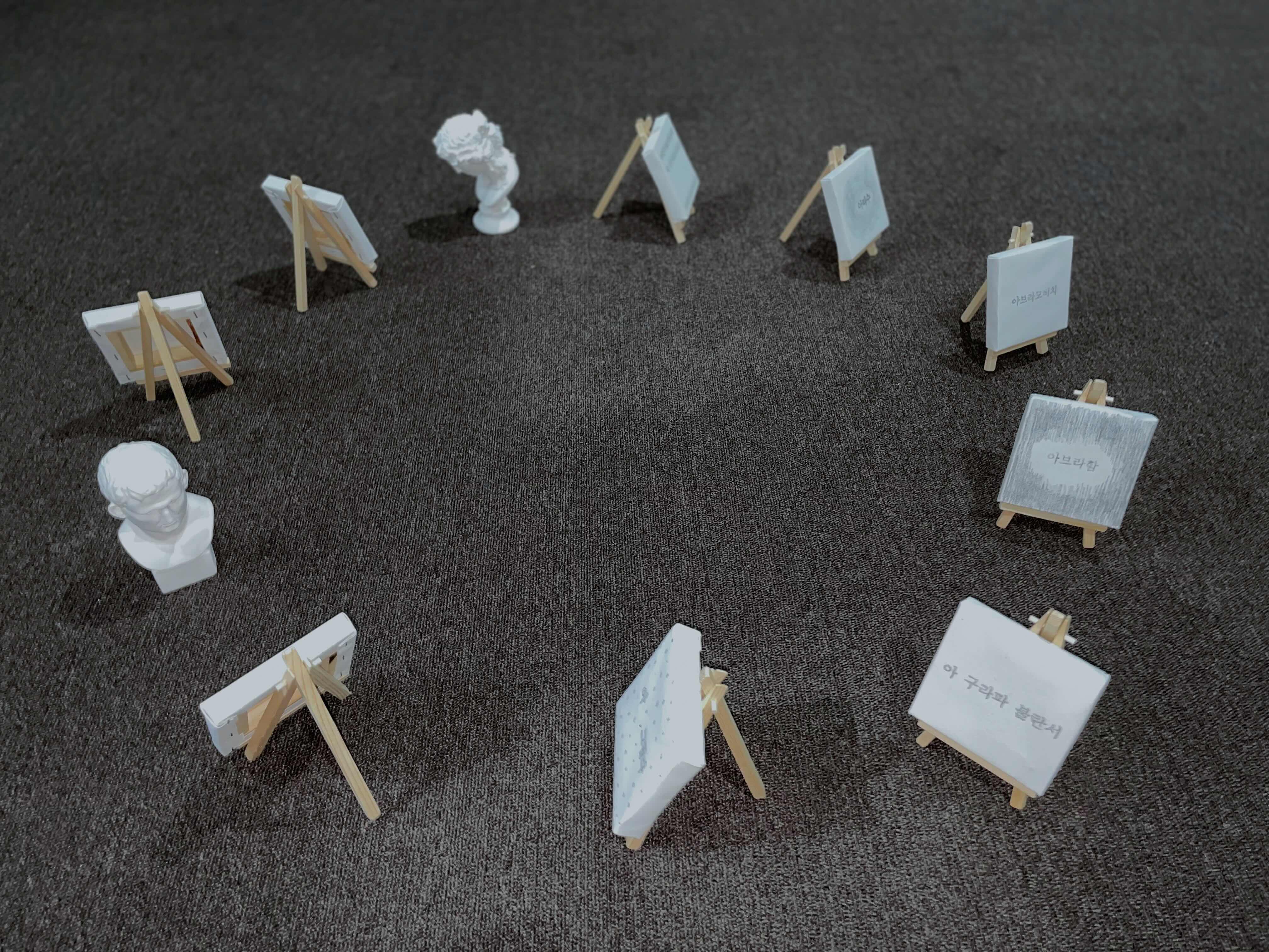 관객은 포스트잇에 동그라미를 하나 그립니다. 자신이 그린 동그라미를 앞서 제시된 동그라미 표본 위에 분류하여 붙입니다. 동그라미 표본은 ‘낯선 동그라미’,’너도 동그라미?’, ‘어제 본 동그라미’ 등 모호한 표현으로 나누어져 있습니다. 쌓여가는 동그라미는 오해인지 이해인지 알 수 없는 상태, 자기만의 기준대로 분류한 믿음만이 중첩되어 갑니다. 동그라미는 언젠가 완벽한 동그라미에 닿을 수 있을까요?