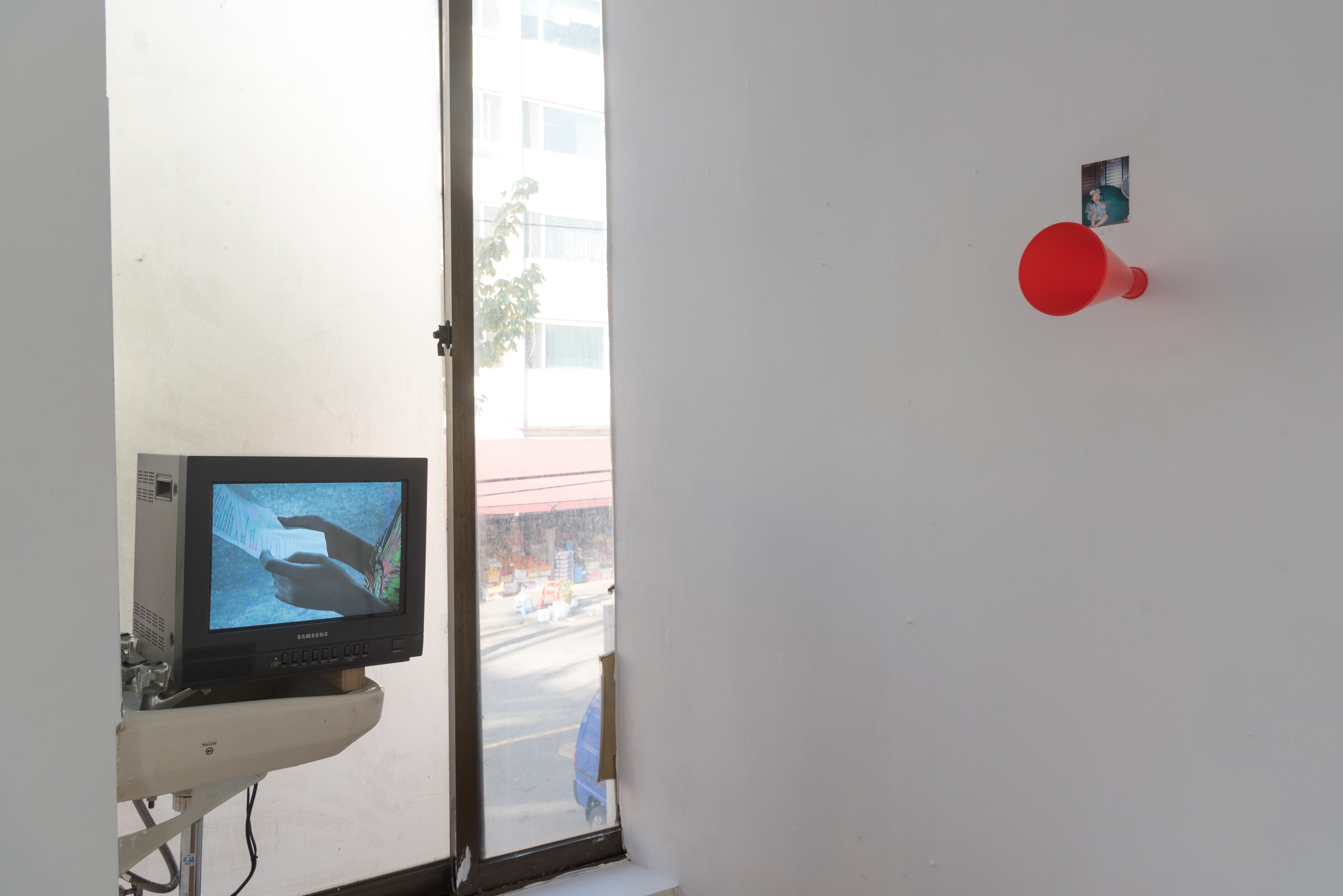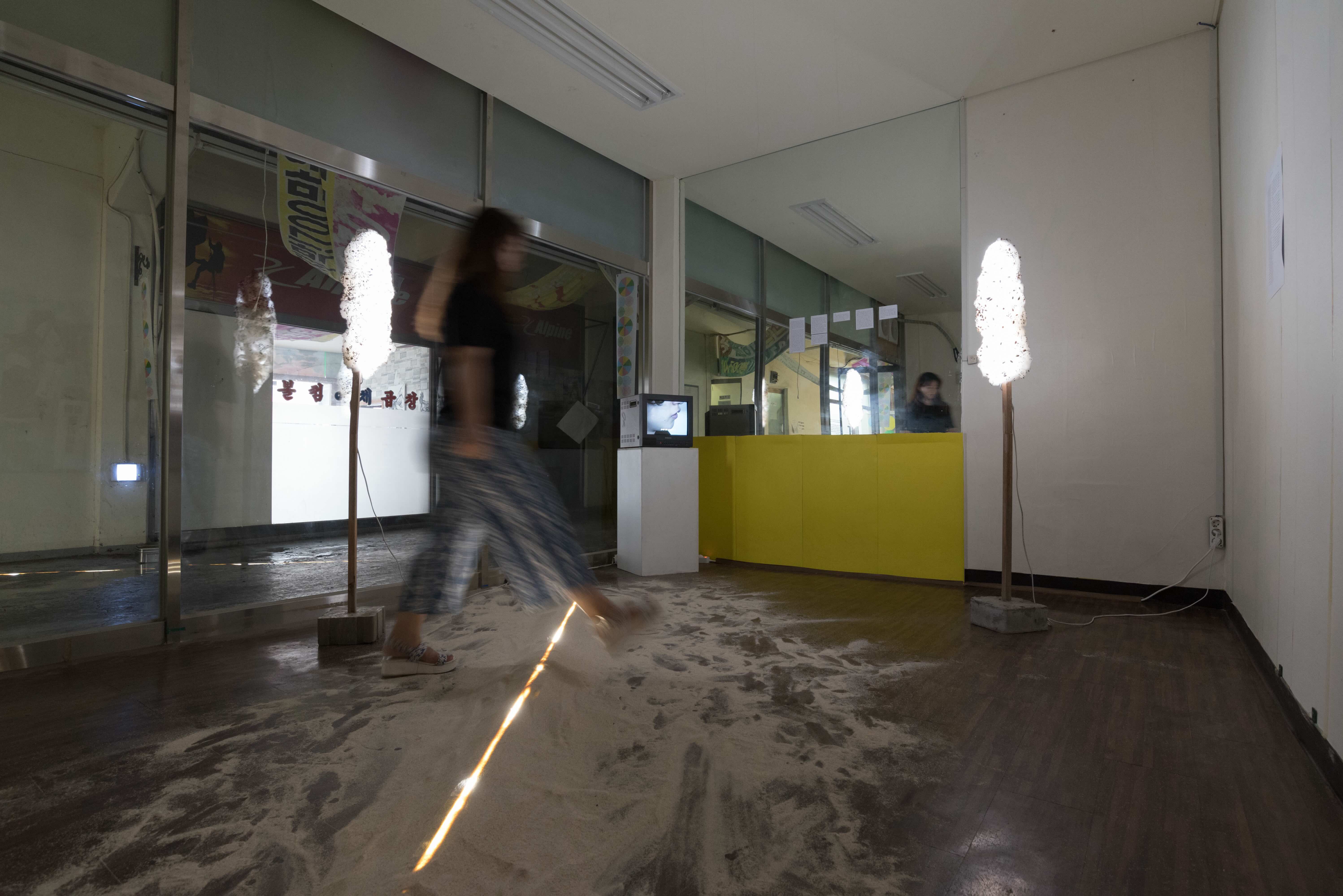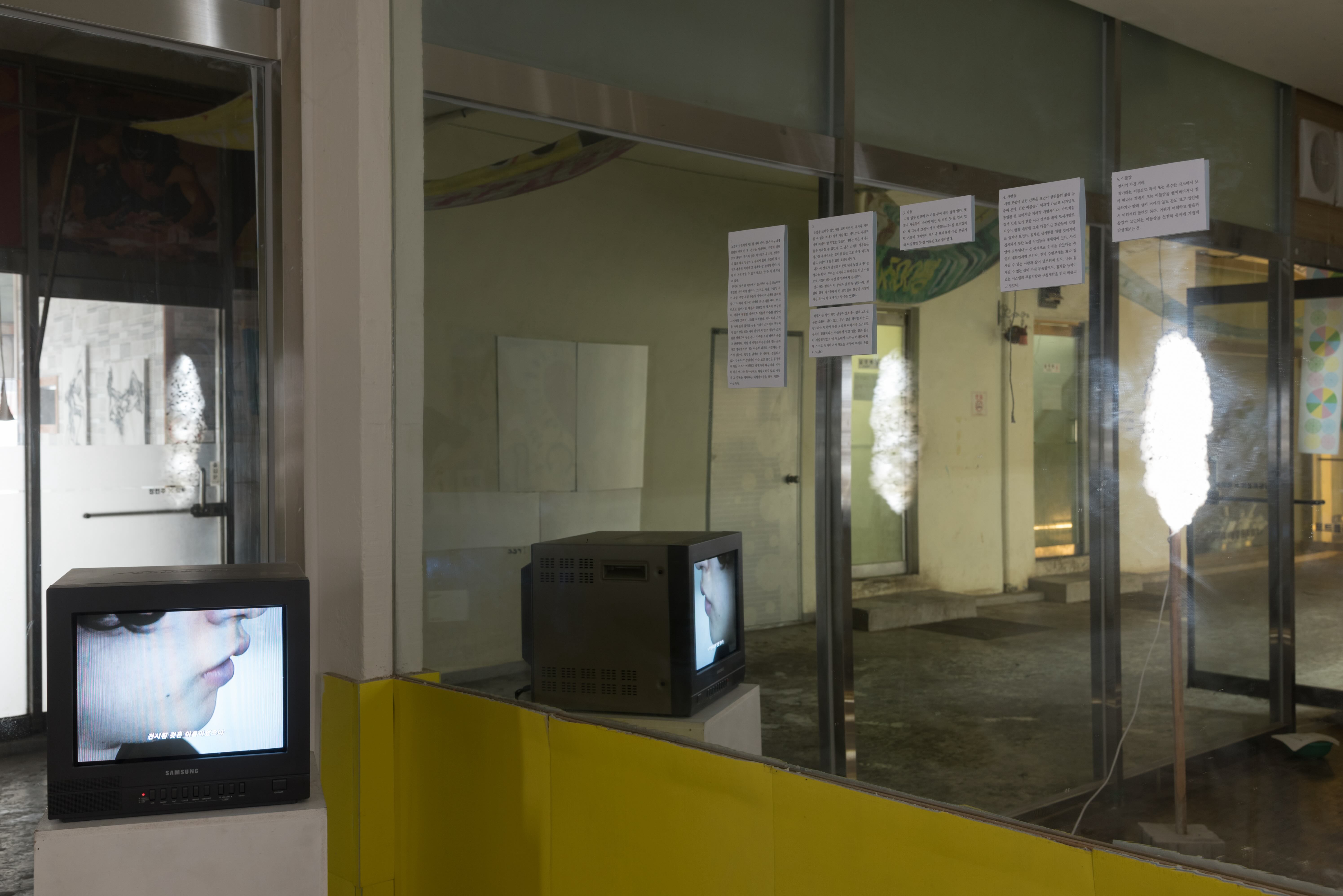 무엇을 보여줄 것인가를 고민하면서, 역시나 비켜설 수 없는 지나치기엔 거슬리고 메인으로 내세우기엔 이렇다 할 힘없는 것들이 내뿜는 옅은 에너지들을 묵과할 수 없었다. 그 낮은 소리의 저음들은 앵간한 주파수로는 잡히질 않는 고요 속에 외침과 같고 무당이나 들을 법한 소리들이었다. 나는 이 장소가 낯설고 이곳도 내가 낯설 것이라는 생각을 한다. 우리는 소비자도 판매자도 아닌 신분으로 시장이라는 공간 중 일부에서 전시한다. 전시라는 형식은 이 장소와 낯선 듯 닮았는데, 진열대 위에 디스플레이 된 보임들의 현장인 시장이 가진 특수성이 그 예라고 할 수도 있겠다. 어차피 늘 하던 작업 생경한 장소에서 펼쳐 보인들 무슨 소용이 있나 싶고, 무슨 말을 해야만 하는 그 창조라는 단어에 묶인 조작된 이야기가 스스로도 설득이 필요하다는 마음에서 일고 있는 옅은 물결 이 시발점이었고 이 장소에서 느끼는 어색함에 대해 스스로 질의하고 답해보는 과정이 우리의 작품이 되었다.